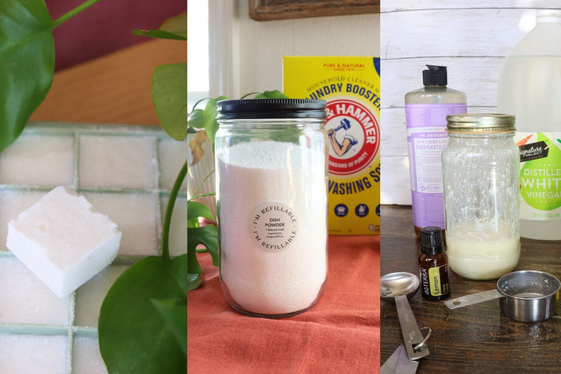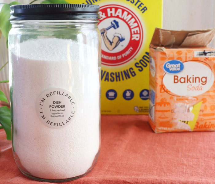 So to help you navigate the world of DIY dish detergents, we’re sharing 3 of our favorite go-to recipes we’ve been using for years. Specifically dishwashing detergent powder, liquid and pods (or tablets). These all strike a balance between performance (they’re super effective and you can tweak the ratios depending on your preference), sustainability and cost saving.