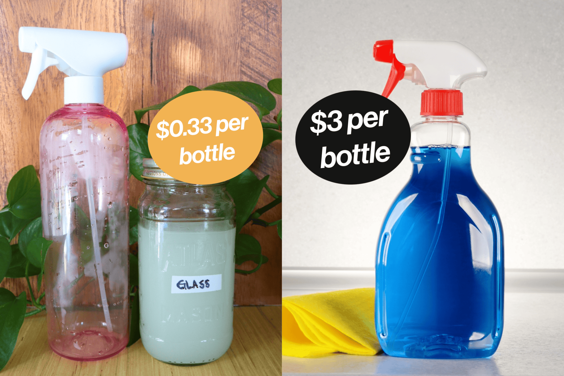 Comparison to Conventional Window Cleaner: A standard 32-ounce bottle of commercial window cleaner costs around $3.00.